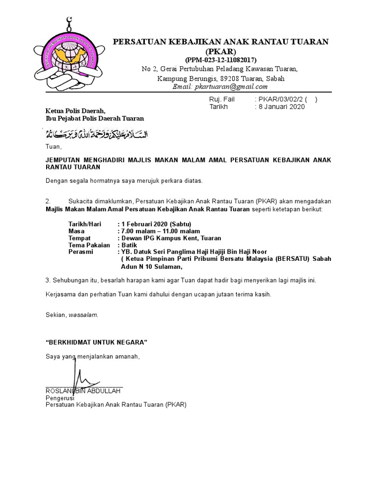 Surat Jemputan Majlis Makan Malam Amal Pdf